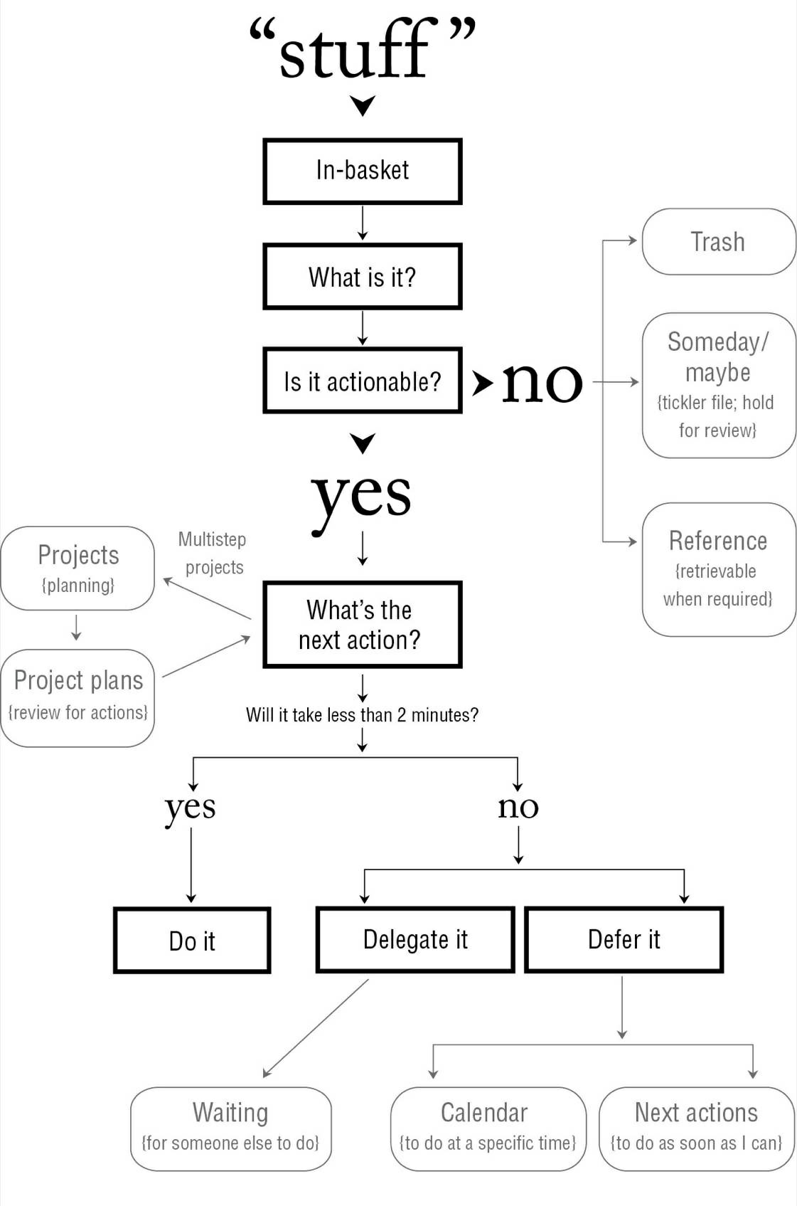 Process what you’ve captured into clear and concrete action steps. Decide if an item is a project, next action, or reference.Clarifying is getting “In” to Empty.