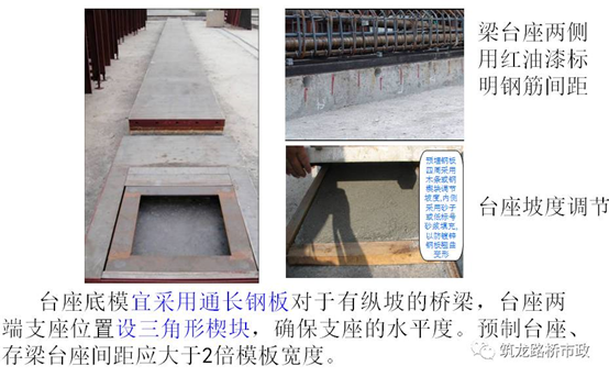 梁片堆放时按预制时间顺序堆放,支点应在支座处,并应便于运输起吊。每片梁应喷涂信息表,且张拉后存放时间不得超过规定的存梁期(一般为3个月)