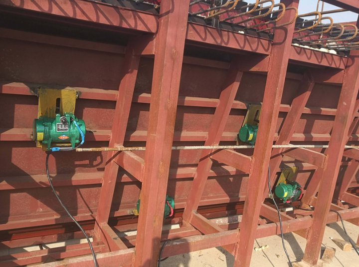 模板边角以及振动器振动不到的地方应辅以插钎振捣。预制梁顶板应用平板振动器振捣,腹板采用附着式平板振动器振捣,振捣应掌握好时间。