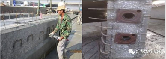 初凝前对梁顶进行拉毛,拆模后应立即对梁片湿接部位采用机械凿毛。
