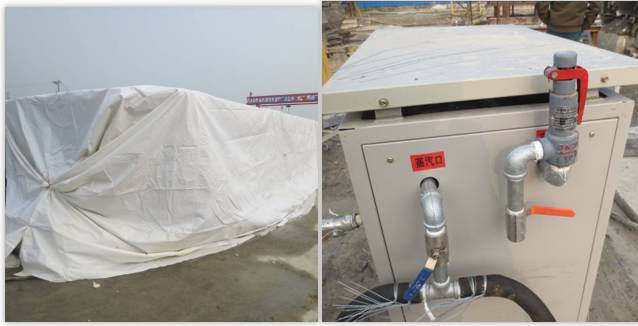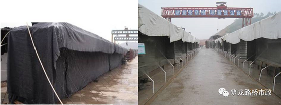 覆盖至梁底砼浇注完后要及时进行养生,在砼表面铺上薄膜或土工布,采用自动喷淋养护系统对梁顶侧面进行不间断的洒水。