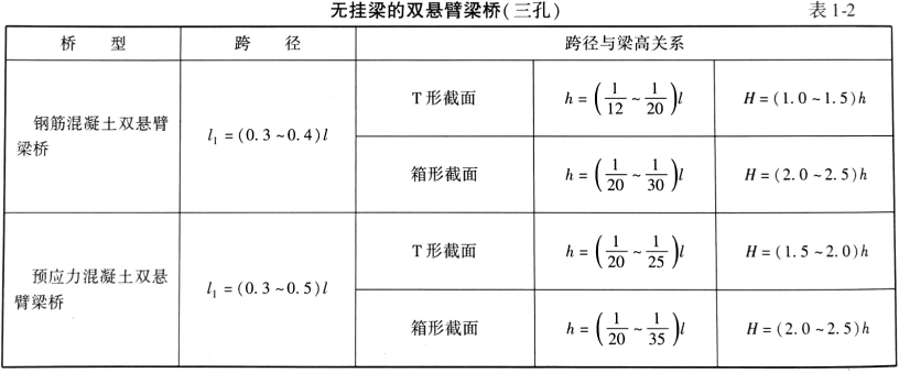 H/L=1/15~1/20,满堂支架施工可取偏小值,悬臂施工可取偏大值。