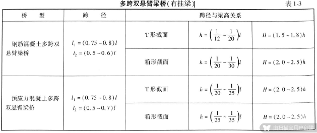 介绍了常用梁桥的高跨比选择