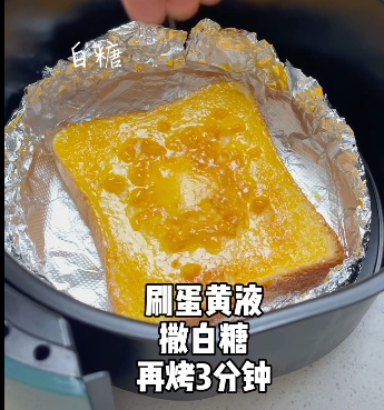 刷蛋黄液、白糖->再考3min