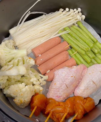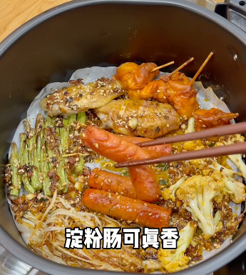 空气炸锅底刷油->放豆腐->豆腐刷油->180度15min