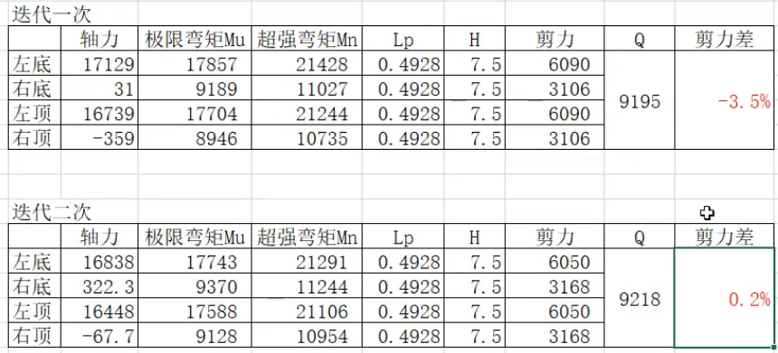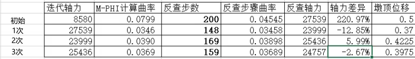 由查到的相应步骤反查曲率、轴力、墩顶位移。并由上一个步骤的轴力值继续迭代,直至轴力差异较小,视为收敛(规范没有收敛标准),可认为在5%以内。
