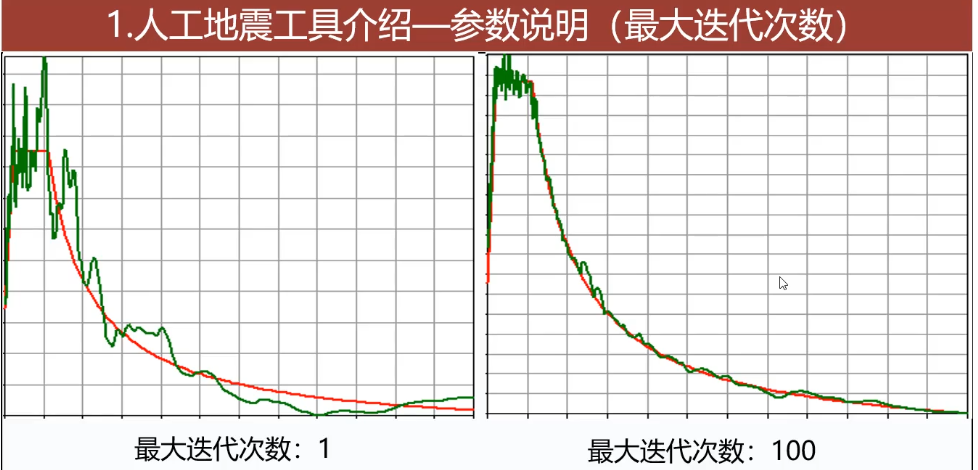 最大迭代次数:保证设计谱与生成地震波的谱曲线在结构的主要振型周期点相差不大于20%。迭代次数的含义