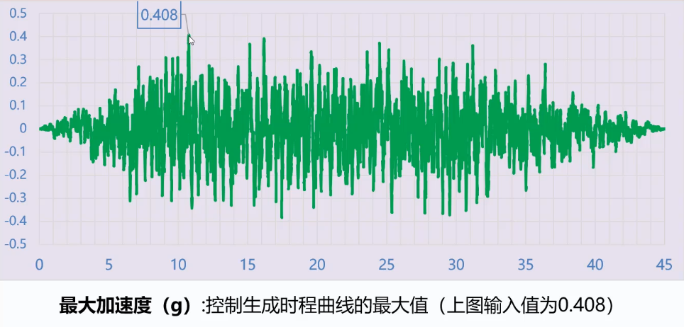 最大加速度:输入设计反应谱最大值Smax/2.25。最大加速度含义: