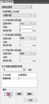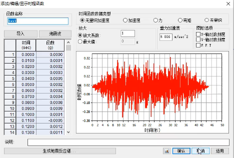 对结构施加地面运动,并确定分析方法(时程荷载工况)及地震波函数。