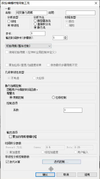 将静力荷载(恒载)以某种加载路径(加载函数)转变为可被时程荷载接续的荷载。其本身也可以作为单独的荷载工况查看结果。