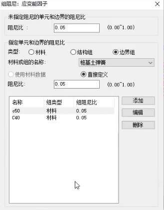 应变能因子用于材料复杂的桥(不清楚桥的整体阻尼),应变能因子的设置: