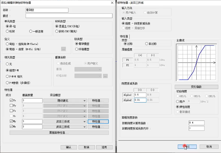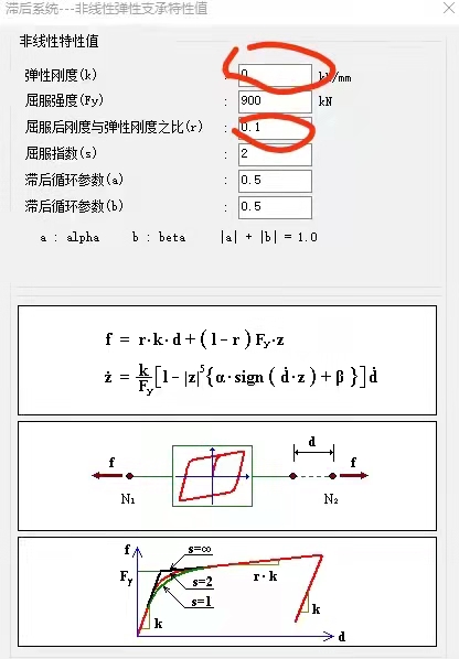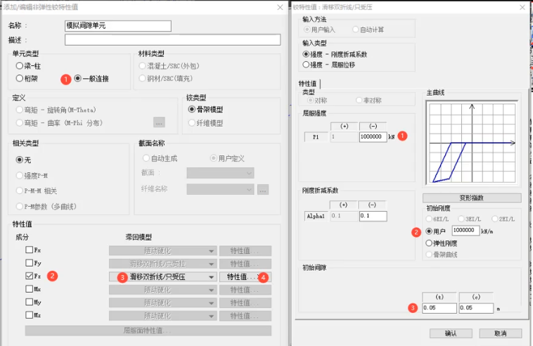 屈服强度就是挡块屈服强度;初始间隙为梁与挡块间隙;初始刚度就是接触时的刚度(橡胶垫块)