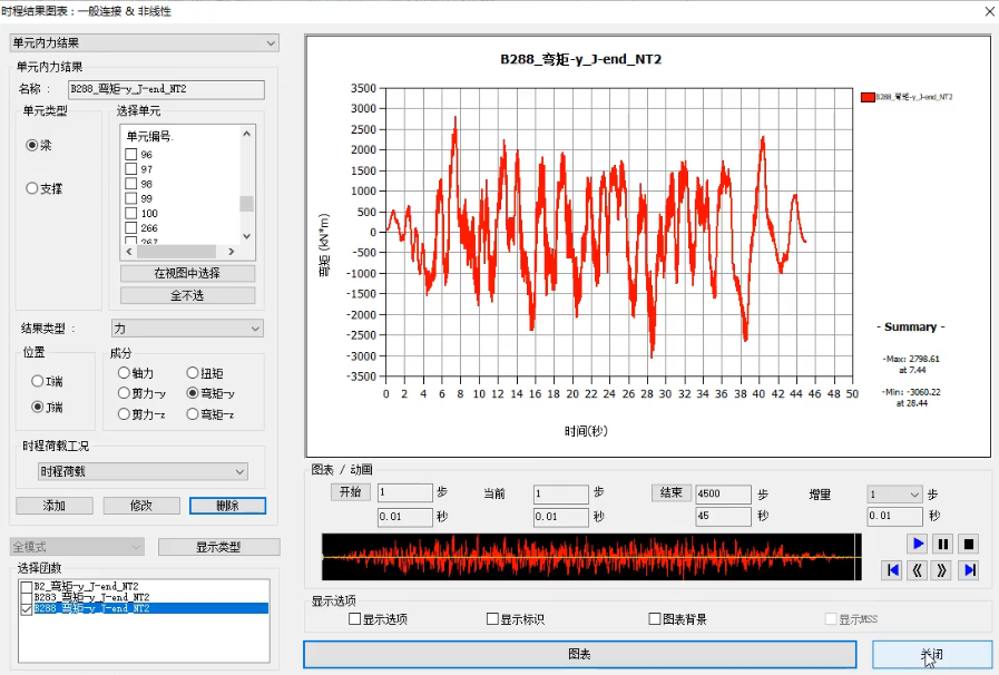 也可以直接由图表生产的xls选取相应时刻的弯矩、轴力。